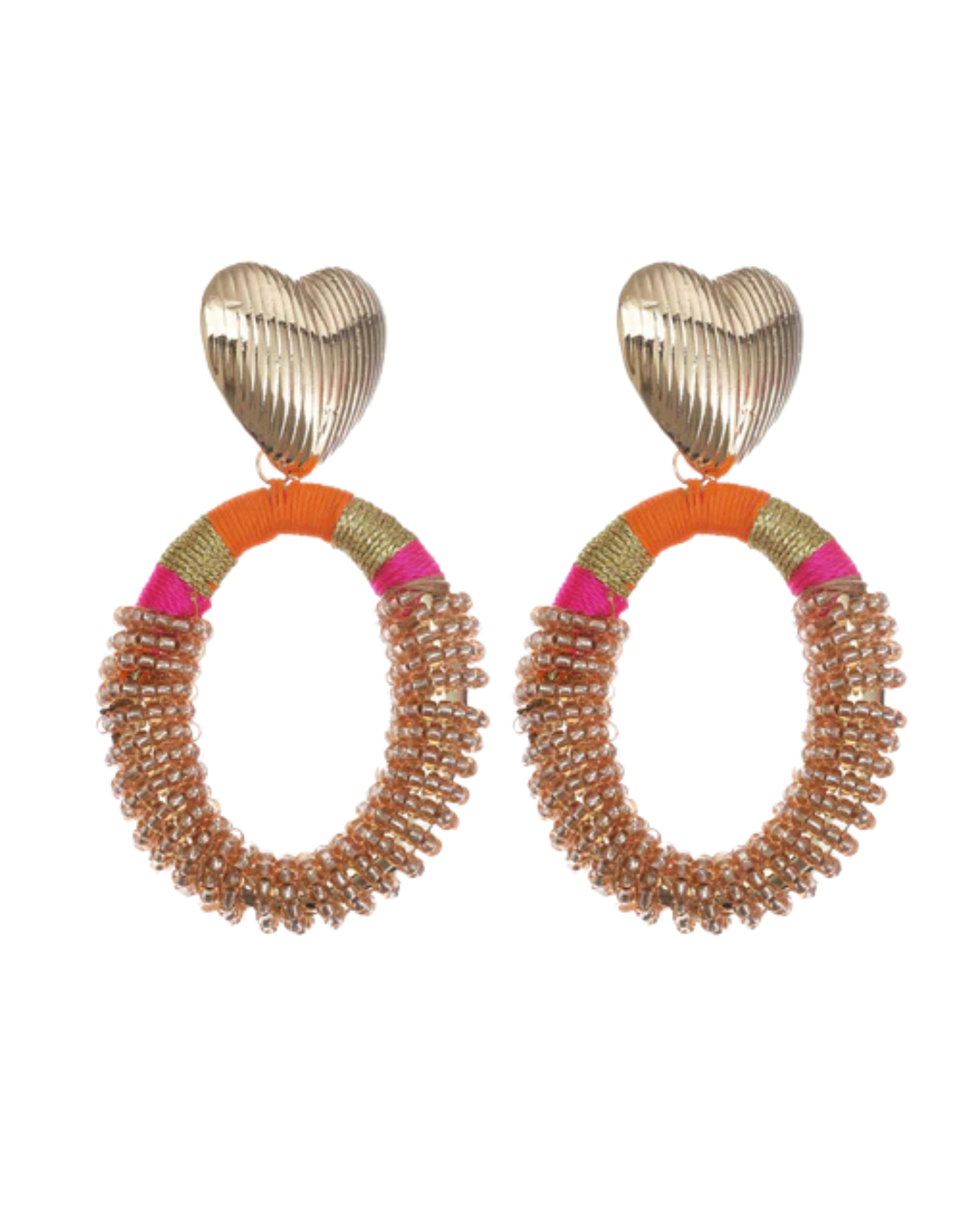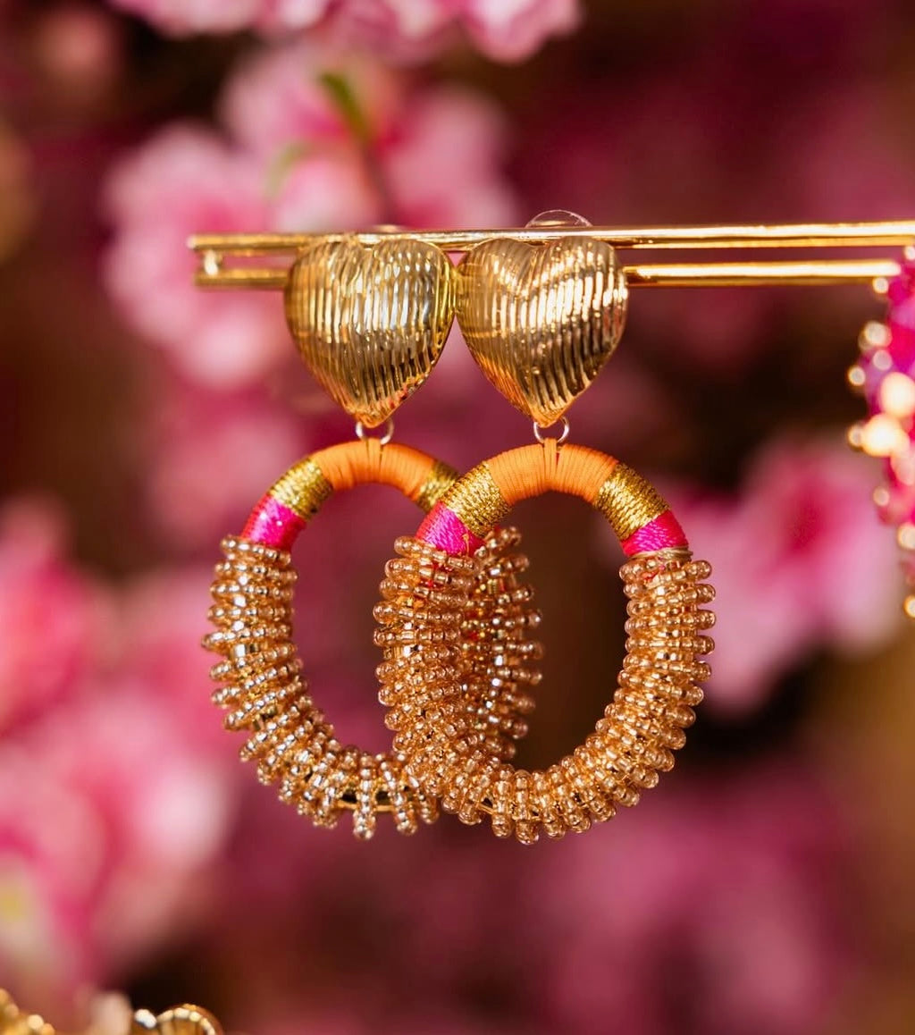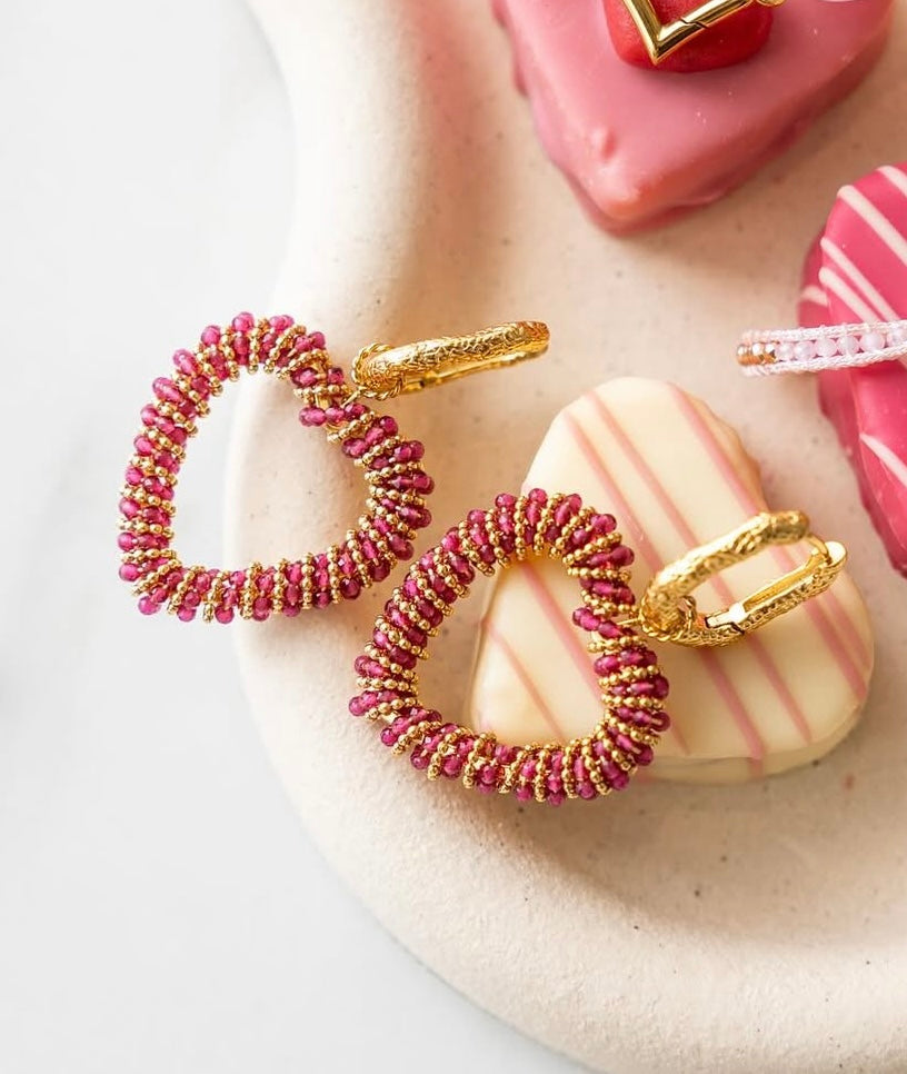Gouden hart oorbellen met kleurrijke kralen