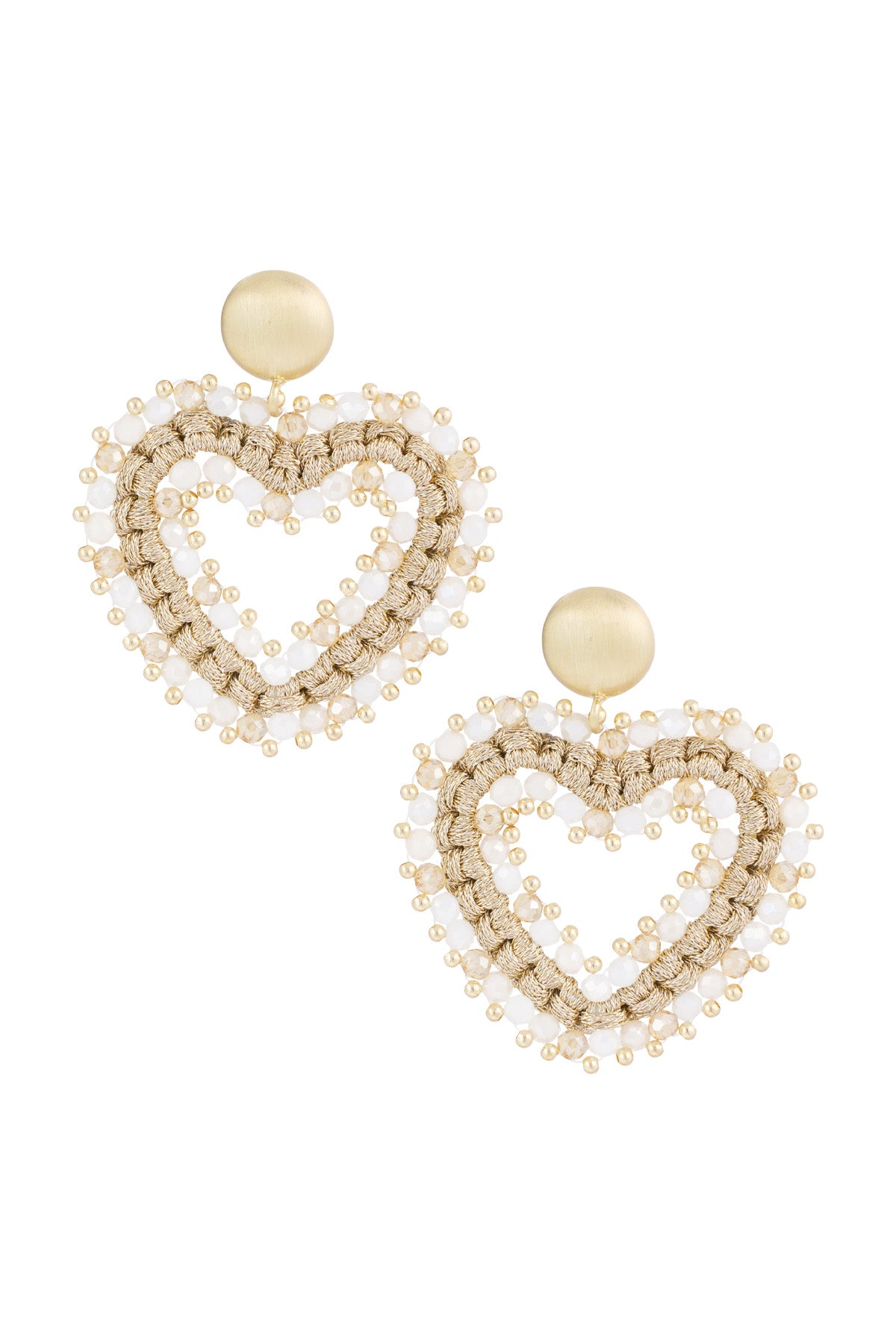 Laat je romantische kant stralen met deze prachtige hartvormige oorbellen van Keymi. Elk paar is met de hand vervaardigd en versierd met delicate kralen en glanzende gouden accenten. De bohemian uitstraling maakt deze oorbellen perfect voor speciale gelegenheden, terwijl de elegante afwerking ze geschikt maakt voor dagelijks gebruik. Een tijdloze toevoeging aan je sieradencollectie!