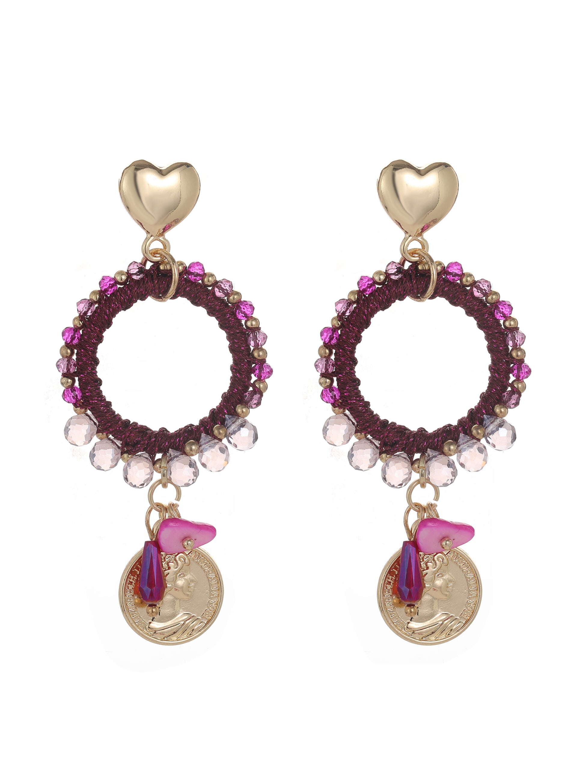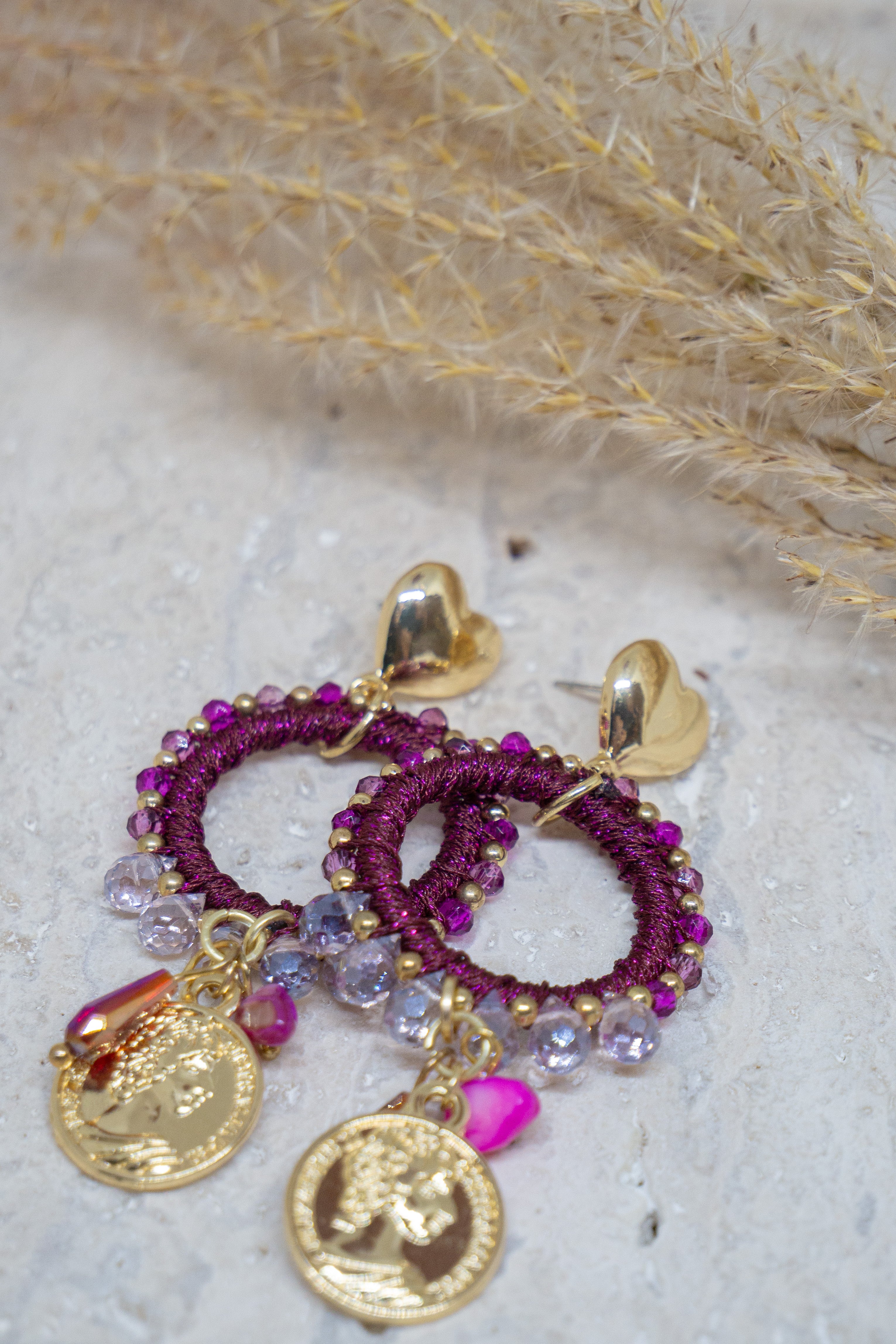 Deze ronde paarse statement oorbellen met hart zijn de perfecte mix van stijl en charme, dankzij hun ronde vorm en het unieke hartvormige detail aan de bovenzijde. De paarse kleur zorgt voor een speelse maar elegante touch, terwijl de gouden elementen zorgen voor een luxe uitstraling. De oorbellen zijn afgewerkt met mooie kralen in verschillende tinten. Draag deze prachtige oorbellen naar een feestje, een avondje uit of een speciale gelegenheid en maak je outfit helemaal af.