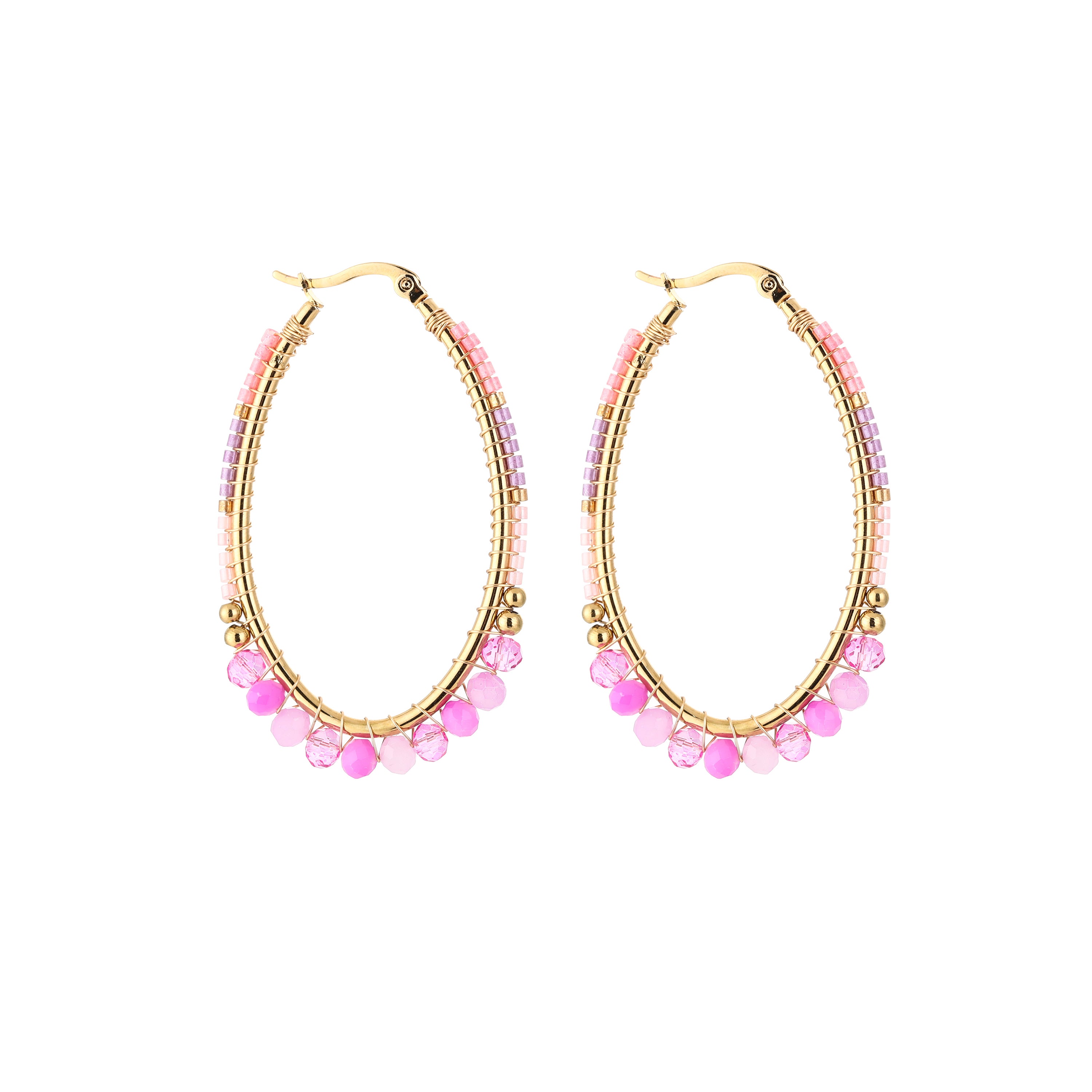 Oorbellen met roze en lila kralen