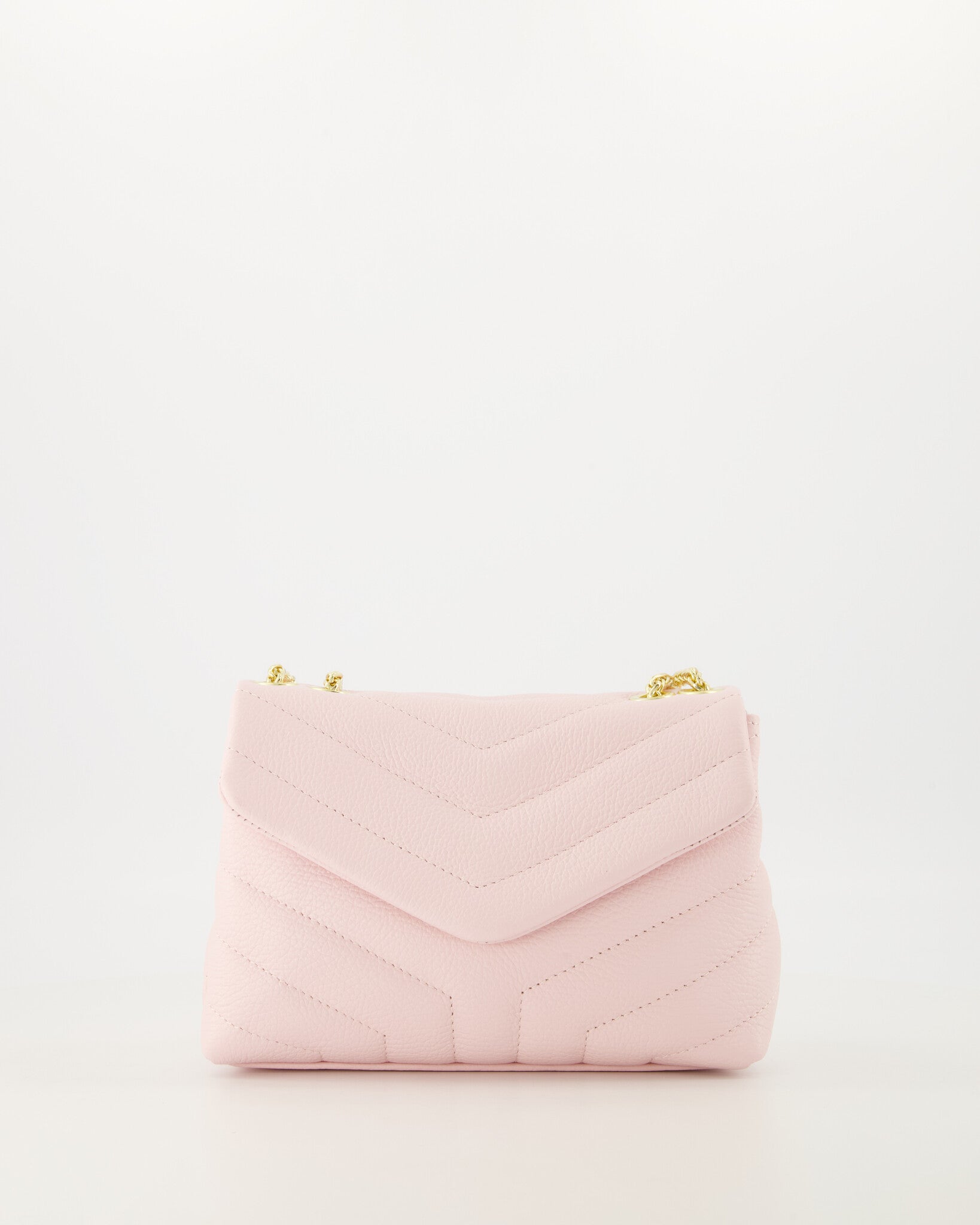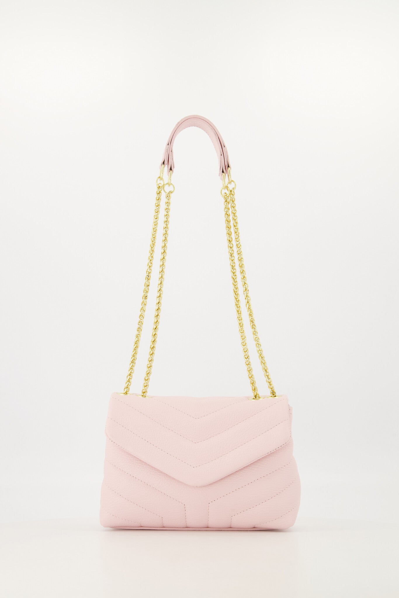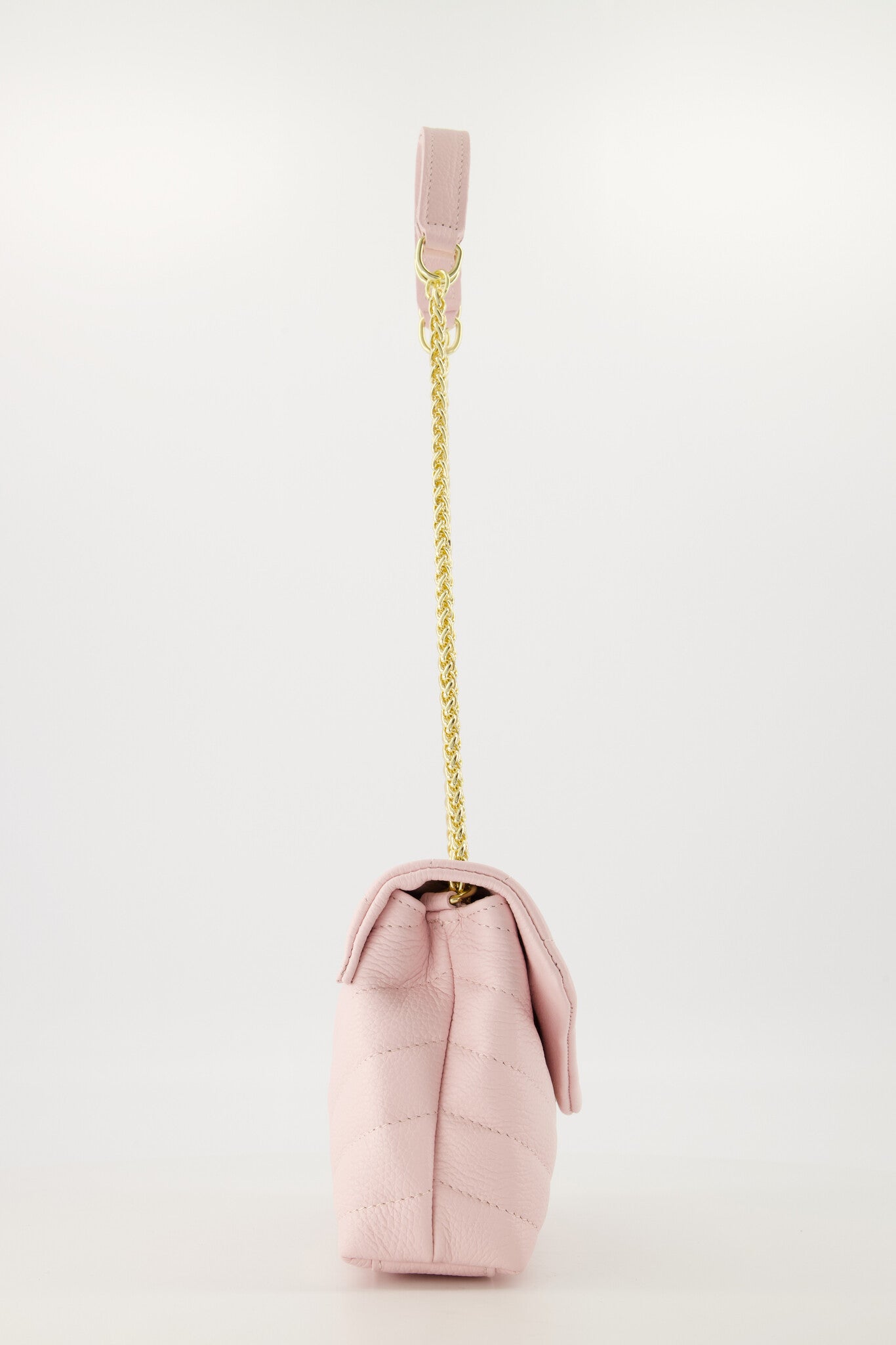Onze favoriet, de Celine tas, is gemaakt van Italiaans leer en komt in een lichtroze uitvoering. De tas is gemaakt van 100% echt leer en is voorzien van een voorflap met een magneetsluiting. Binnenin biedt de tas een ruim hoofdvak en een handig steekvak met rits. Het dubbele kettinghengsel, afgewerkt met een gouden finish en een leren band, voegt een vleugje luxe toe. De Celine crossbodytas is perfect voor zowel casual als chique gelegenheden, zoals een bruiloft.