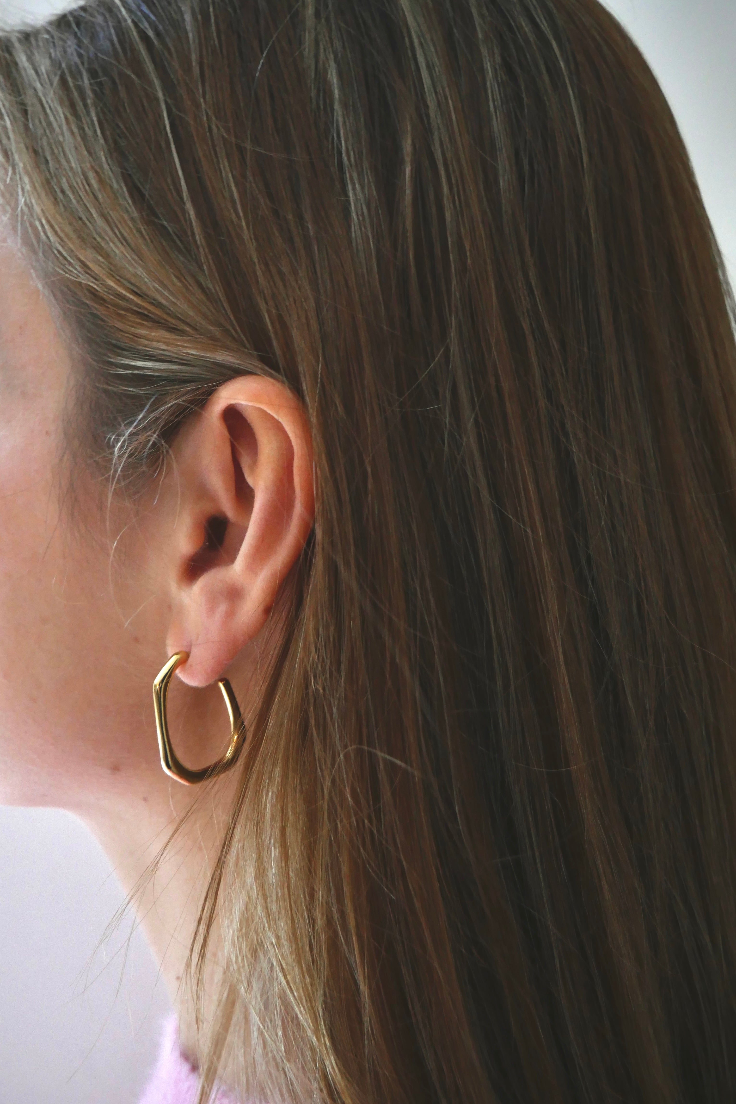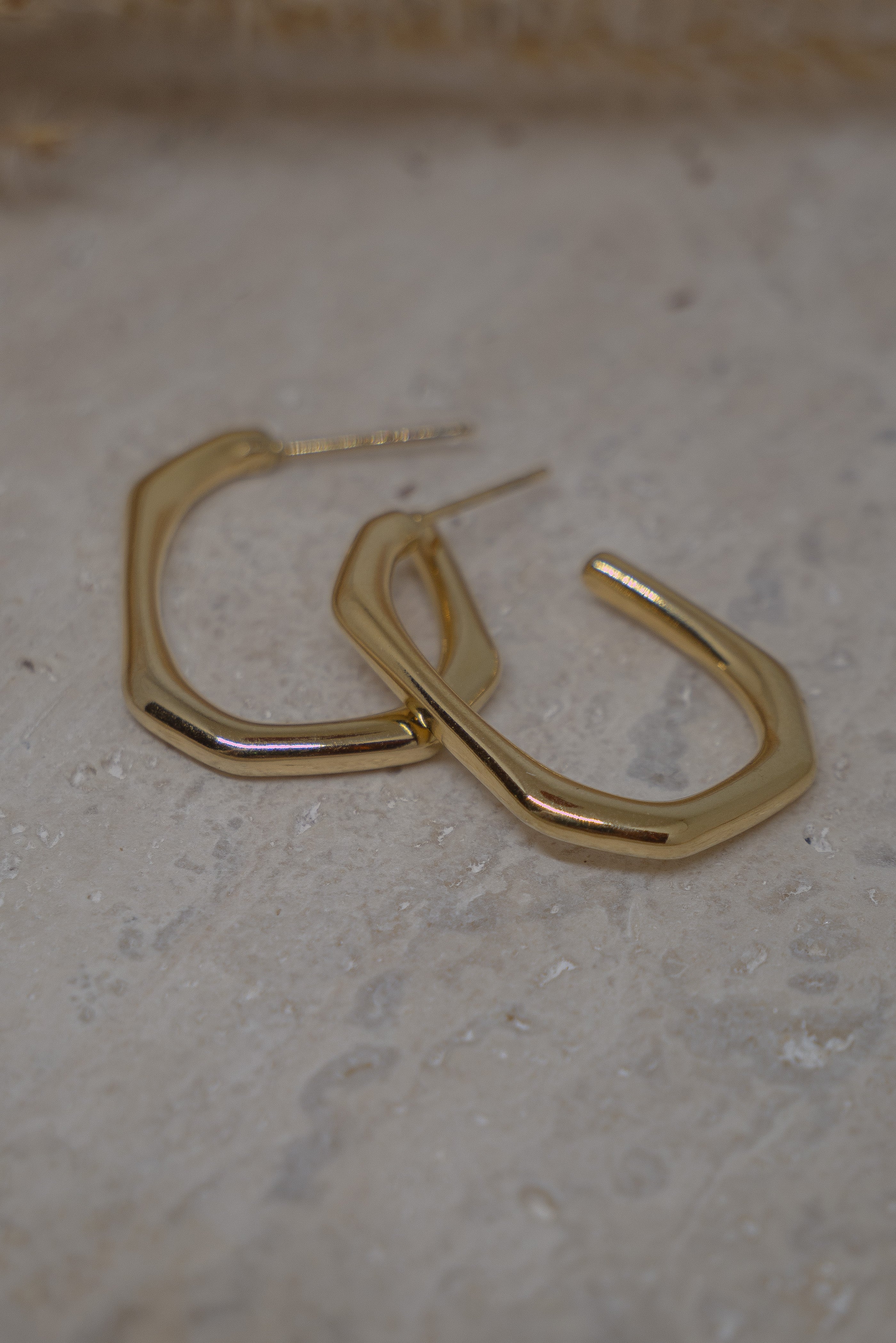 Deze unieke goudkleurige geometrische oorbellen zijn het perfecte accessoire voor elke gelegenheid. Het eigentijdse, asymmetrische ontwerp combineert stijl en comfort, waardoor deze oorbellen een opvallende toevoeging zijn aan elke outfit. Of je nu kiest om deze oorbellen los te dragen of met andere oorbellen te combineren, deze oorbellen zijn altijd een goede keus.