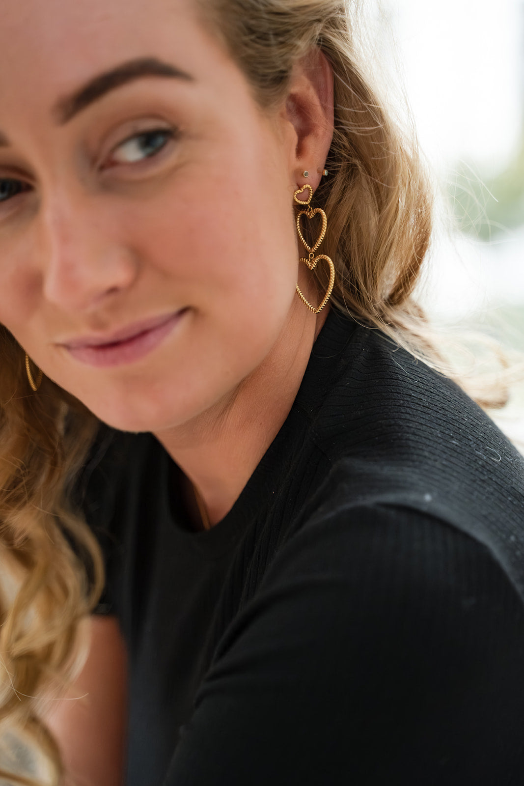 Op zoek naar een vleugje romantiek voor je outfit? Deze gouden hartvormige statement oorbellen zijn perfect voor iedereen die van elegante en opvallende accessoires houdt. Het hartvormige ontwerp met een gedetailleerde, gevlochten structuur zorgt voor een charmant maar verfijnde look. Door de luxe en vrolijke uitstraling, zijn deze oorbellen perfect voor zowel dagelijkse outfits als voor speciale gelegenheden.