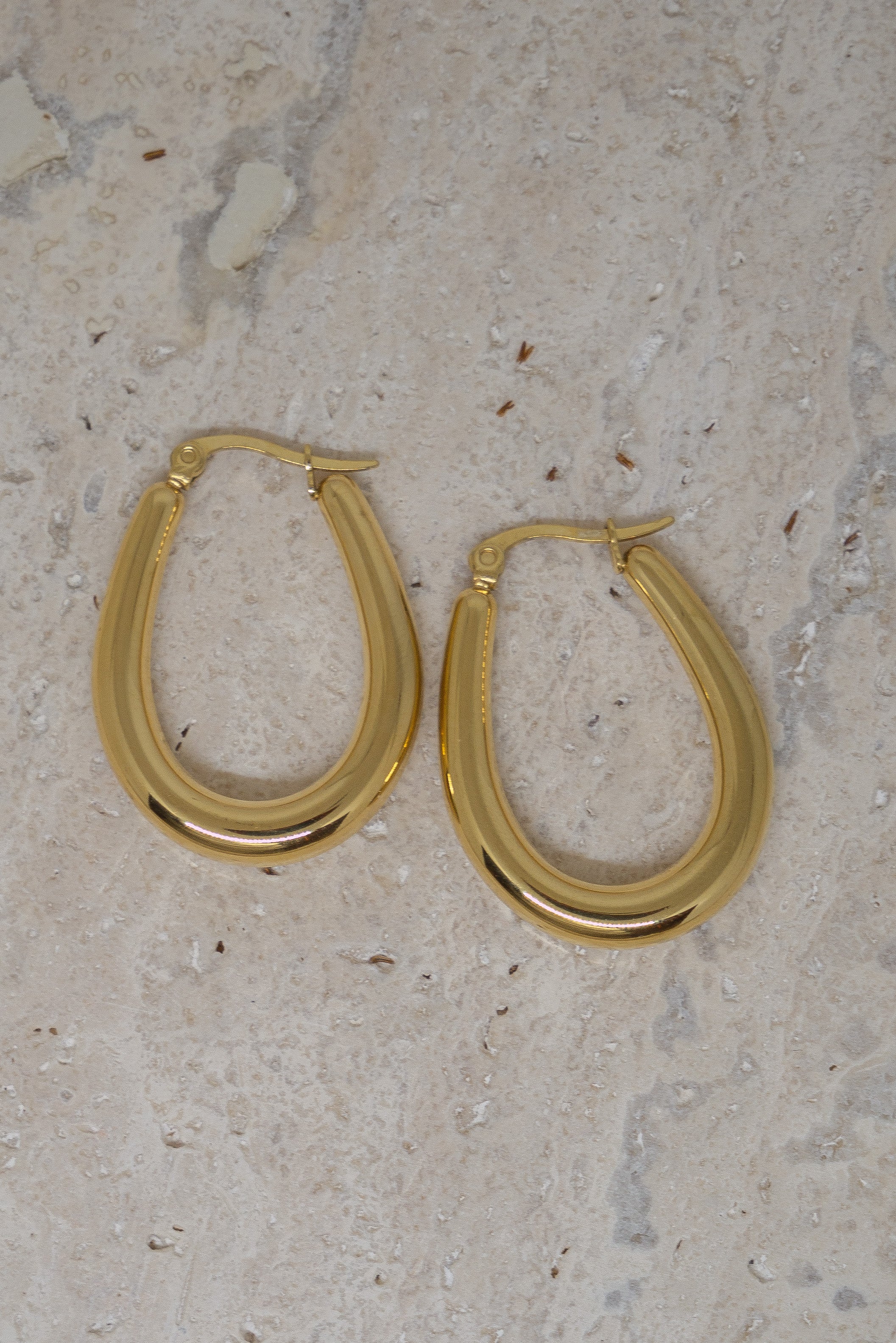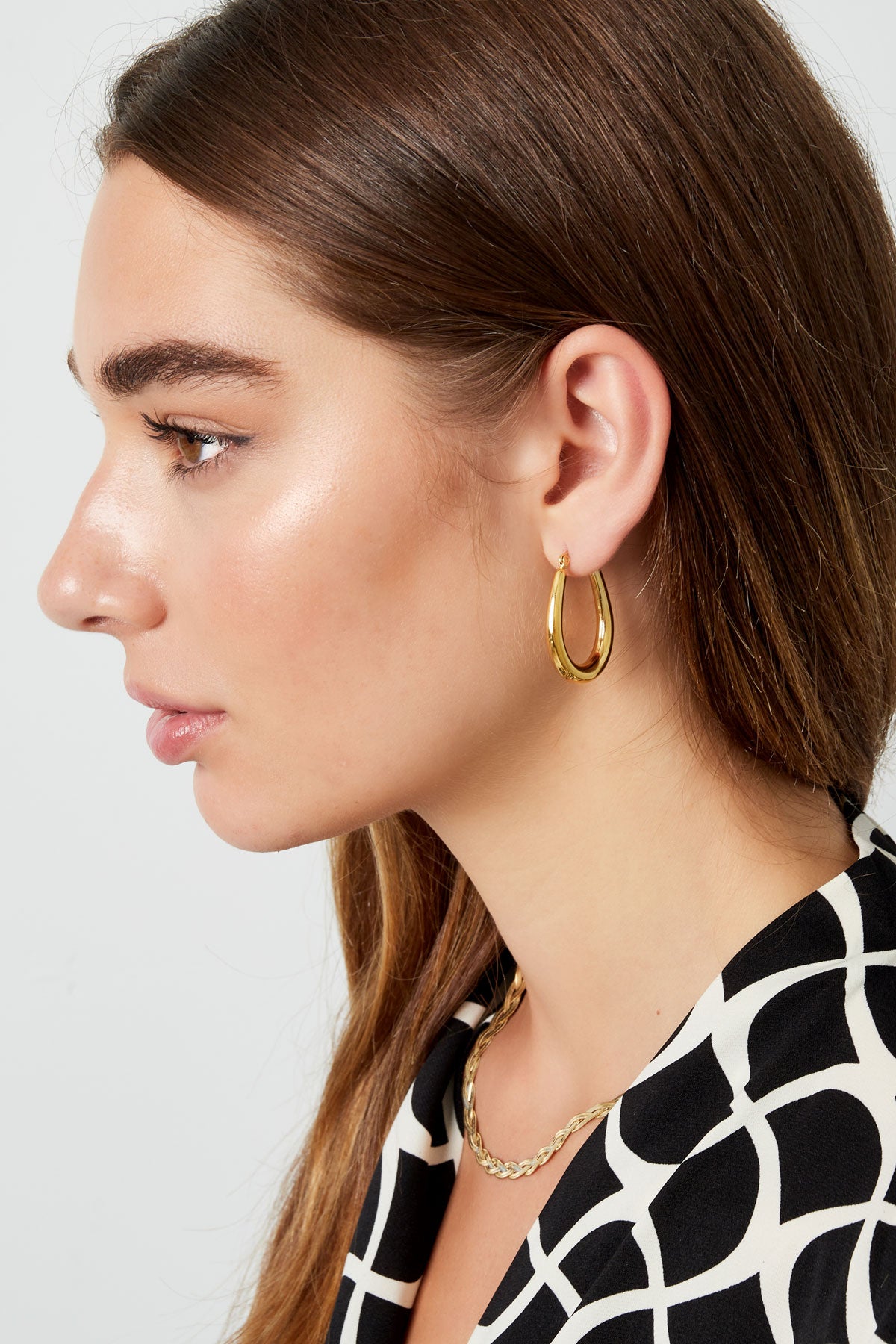 Maak je outfit af met deze klassieke goudkleurige statement oorbellen. De ovale vorm maakt ze perfect voor iedere gelegenheid. Je kan de oorbellen combineren met elke outfit of earparty. Het lichte ontwerp zorgt voor comfort, zelfs bij langdurig dragen.