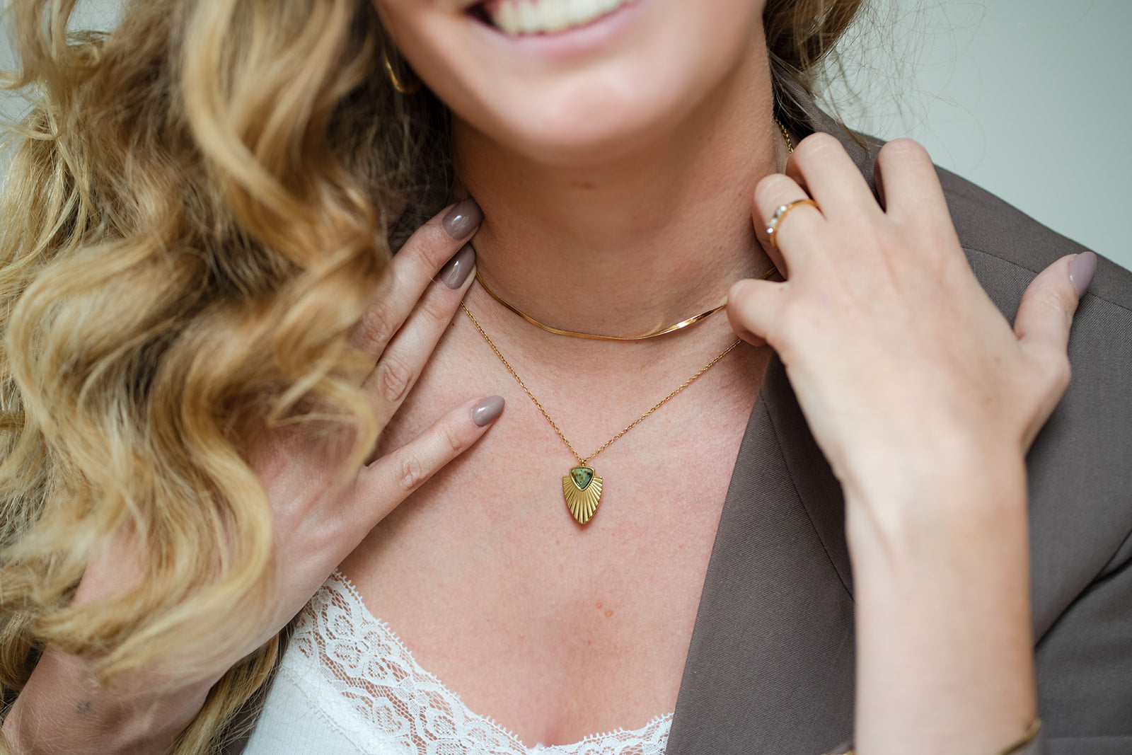 Deze ketting is gemaakt van hypoallergeen materiaal, wat betekent dat het veilig is voor mensen met allergieën. Daarnaast verkleurt de ketting niet wanneer je in aanraking komt met water.