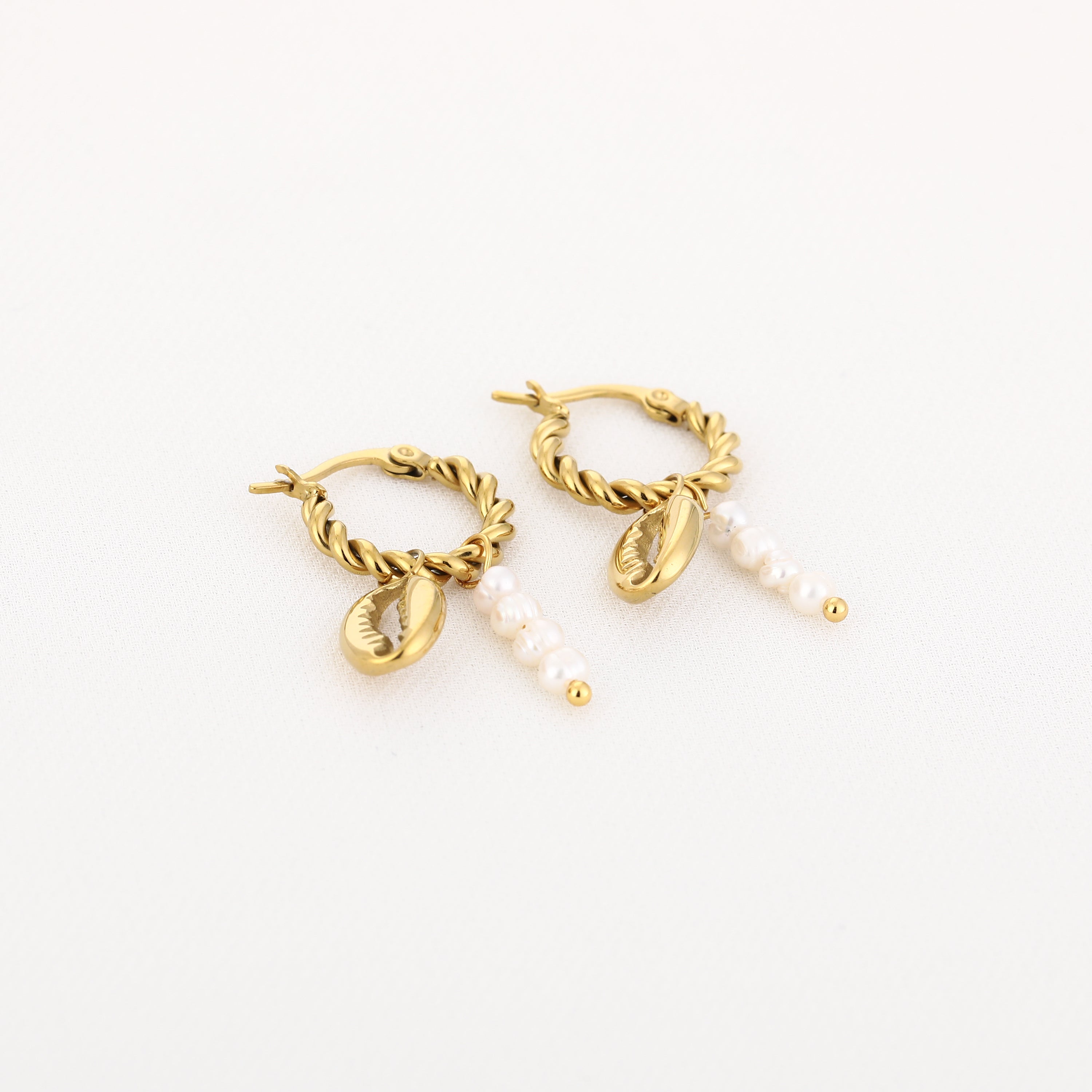 Goudkleurige creolen met schelp en parels