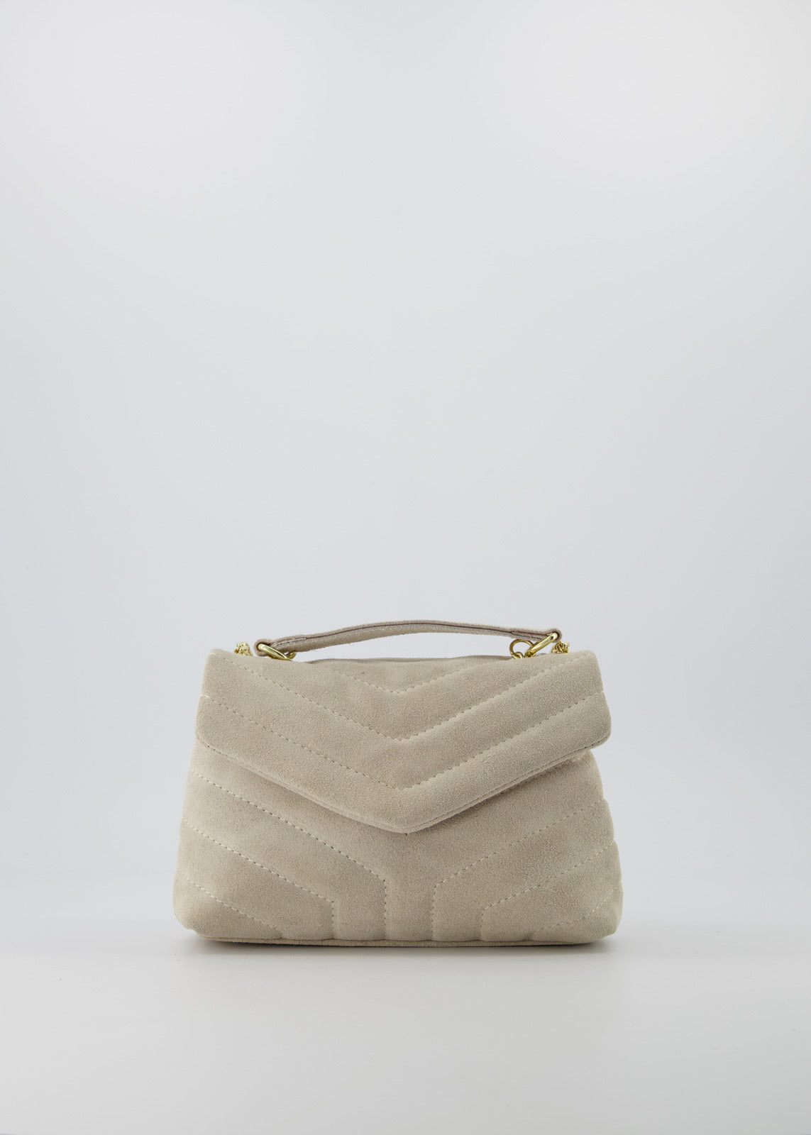 De Celine tas in een suede uitvoering in de kleur Ecru is gemaakt van Italiaans leer. De crossbody tas heeft een voorflap met een magneetsluiting. De tas is voorzien van een hoofdvak en een steekvak met rits. De tas heeft een dubbele ketting hengsel met gouden finish en een leren band. De Celine crossbodytas kan zowel casual als party chic gedragen worden.
