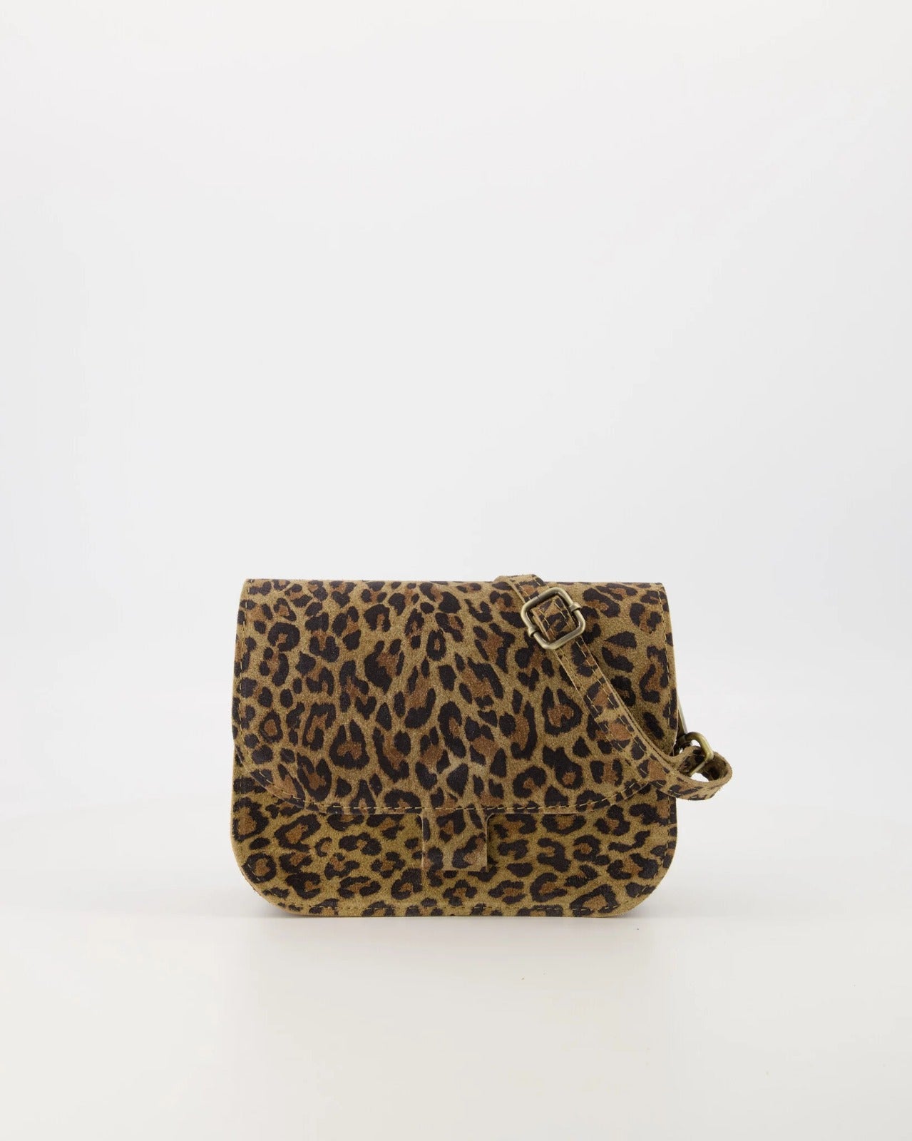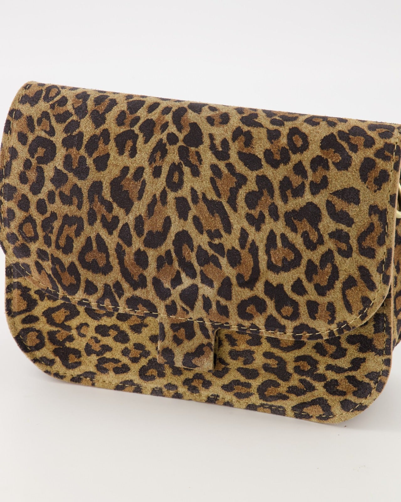 Deze suède leren crossbodytas met magneetsluiting en een lang verstelbaar hengsel is een echt toevoeging aan je collectie. Perfect om jouw outfit mee af te stijlen. De tas is handgemaakt in Italië en heeft een luipaardachtige print. Voeg je favoriete sieraden toe bij je outfit en je bent ready to go!