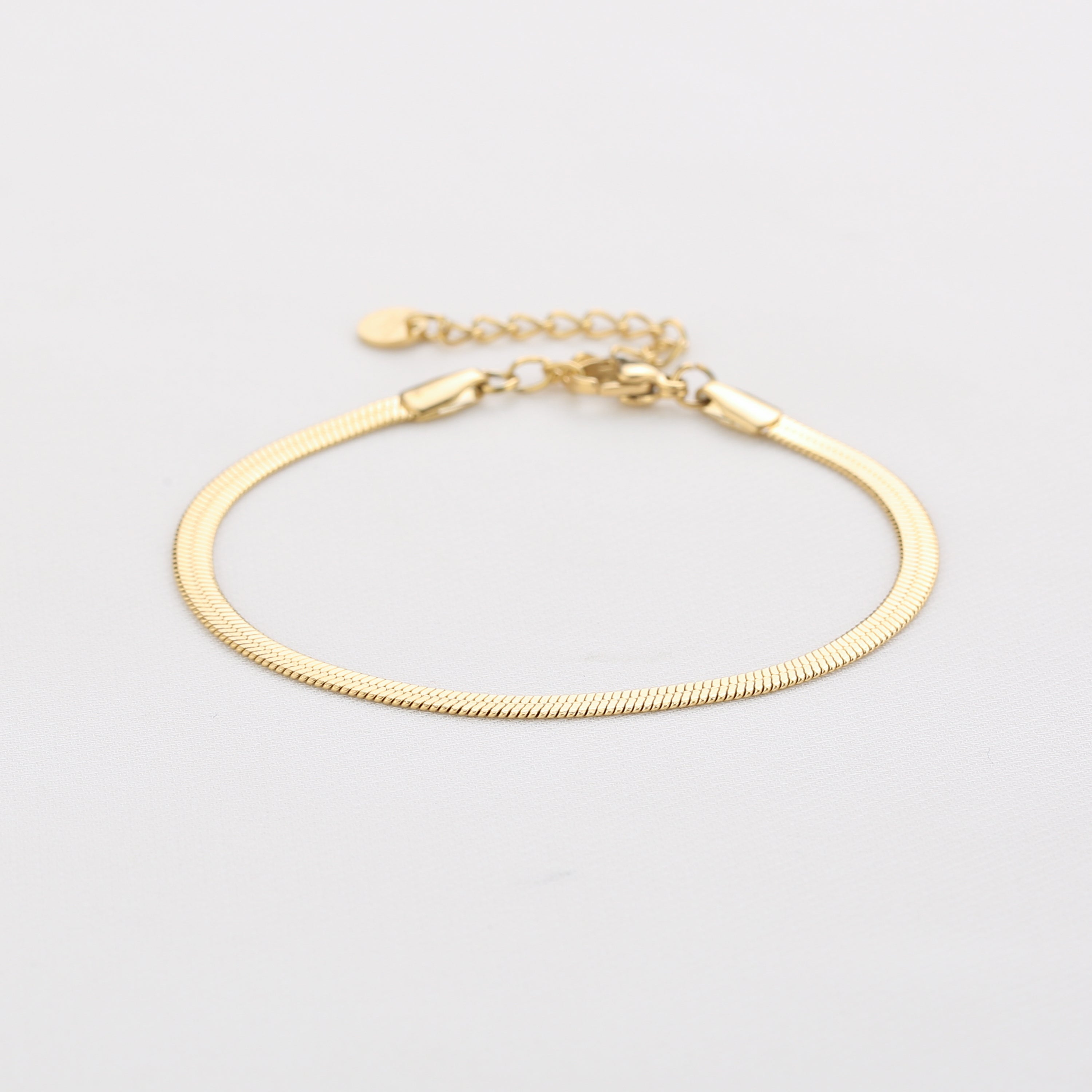 Onze Flat Snake armband is niet alleen stijlvol, maar ook duurzaam. Het vergulde roestvrijstaal is bestand tegen roest en verkleuring, waardoor je jarenlang plezier kunt hebben van deze armband. Bovendien is de armband gemakkelijk te combineren met andere sieraden, waardoor je elke dag een nieuwe look kunt creëren.