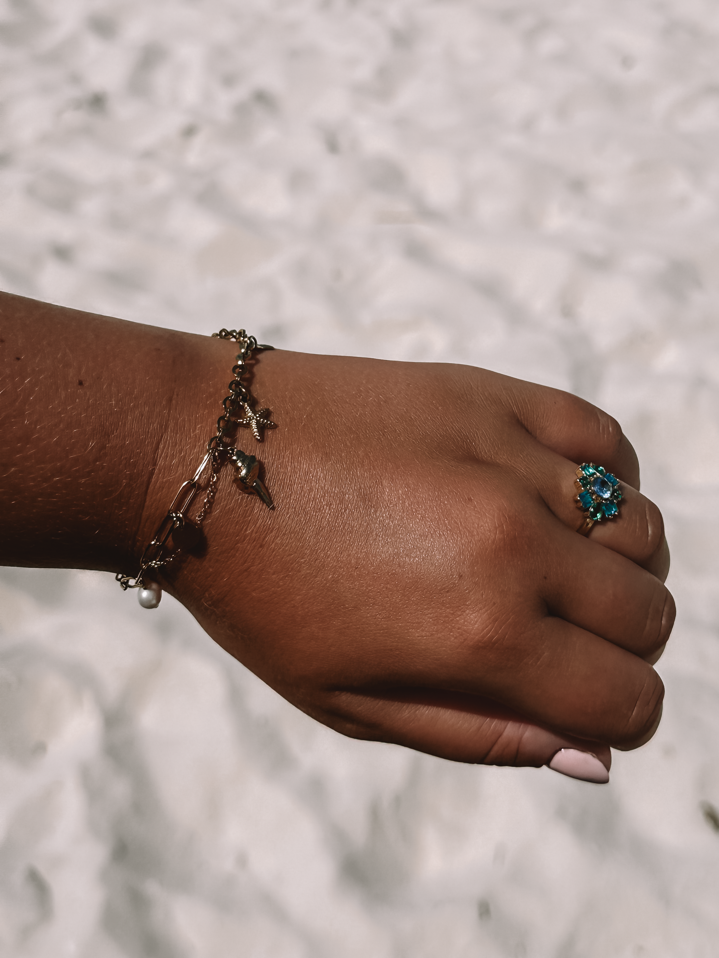 Beach vibes alert! Hoe zomers is deze Ocean schakelarmband met diverse bedeltjes? Helemaal leuk om te dragen tijdens jouw stranddag! Mix & match met andere zomerse items om een echte beachlook te creëren!