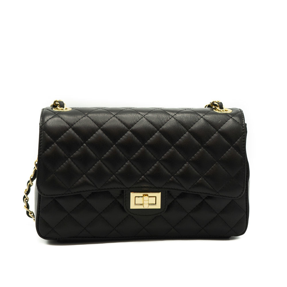 De Audrey crossbodytas in de klassiek zwarte kleur is een tijdloze toevoeging aan je garderobe. Deze leren tas straalt luxe en elegantie uit dankzij het doorgestikte ontwerp en de goudkleurige hardware. Het lange kettinghengsel, afgewerkt met een leren accent, biedt veelzijdigheid en comfort, zodat je de tas zowel crossbody als over de schouder kunt dragen. Met een ruime binnenkant met een apart vakje met rits en een praktische magneetsluiting is deze Audrey tas perfect voor dagelijks gebruik of een avondje uit.