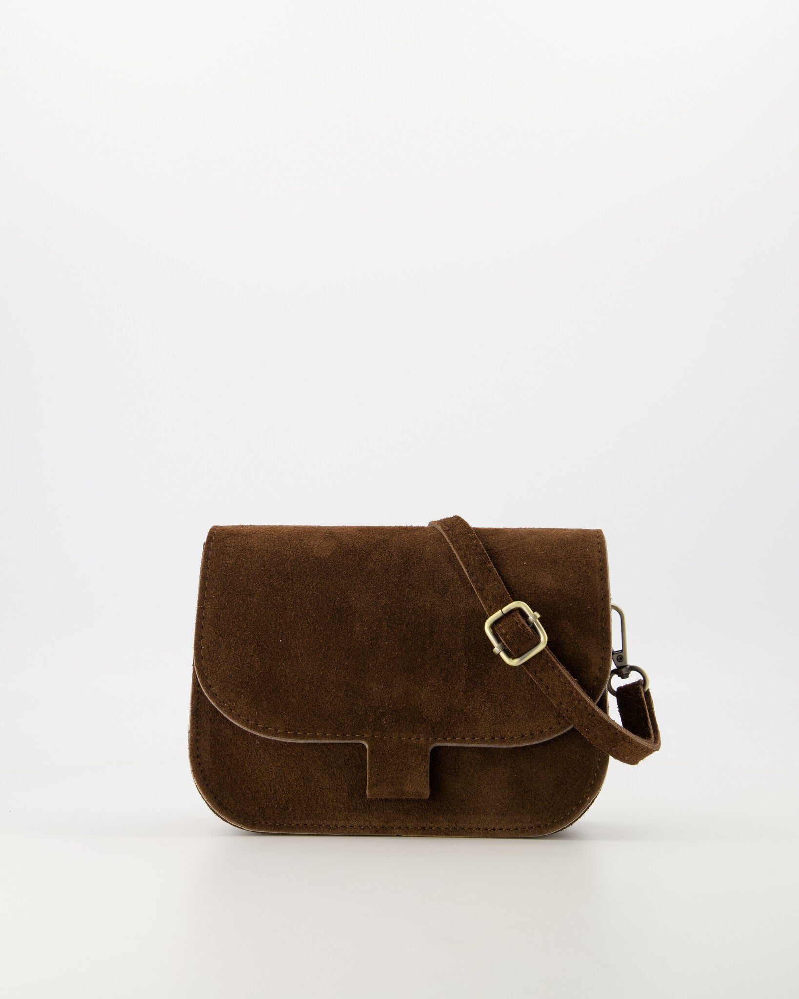 Deze Flora crossbodytas in de kleur donkerbruin is een echte toevoeging aan je collectie. De tas is handgemaakt in Italië en is gemaakt van echt suède leer. De tas is voorzien van een magneetsluiting en heeft een verstelbaar hengsel.