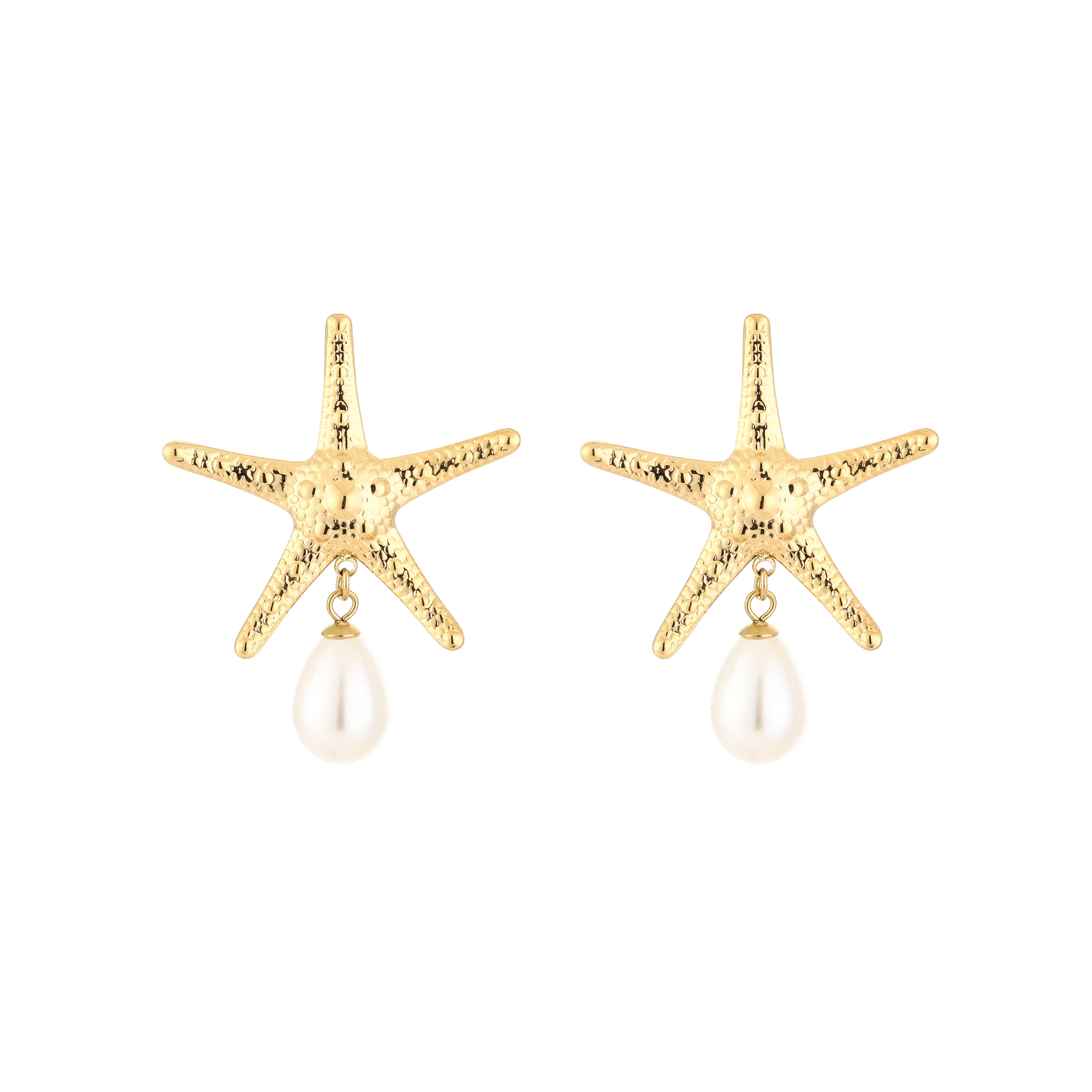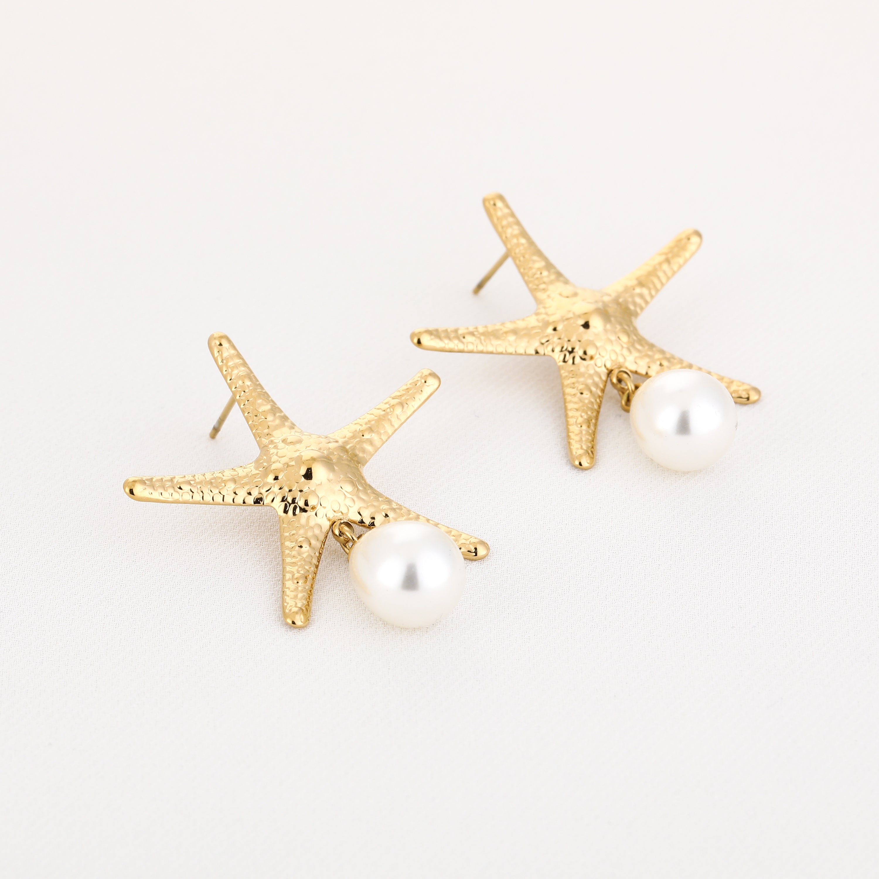 Deze goudkleurige oorbellen met zeester en parel zijn dé finishing touch voor een zomerse look. De combinatie van een speelse zeester en een klassieke parel maakt ze stijlvol én opvallend. Lichtgewicht, comfortabel en perfect voor elke gelegenheid.