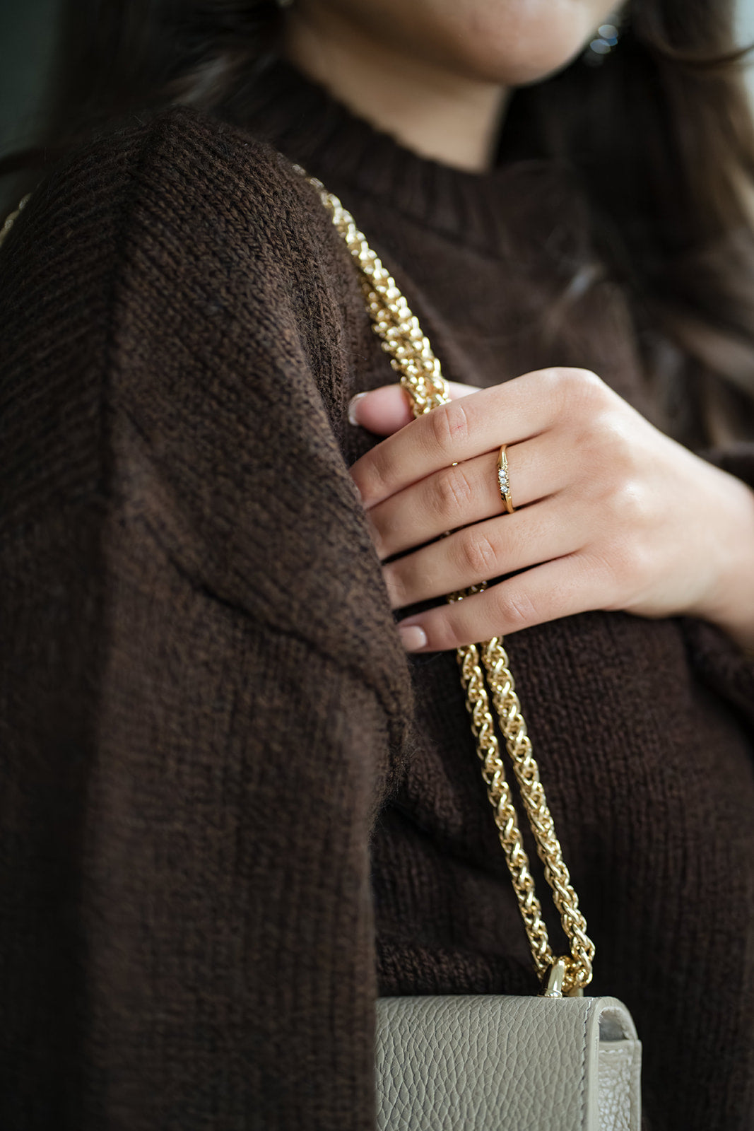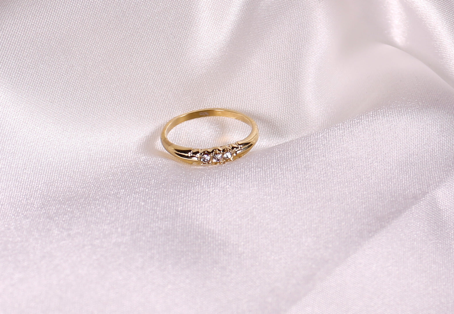 Deze ring heeft 3 kleine, ronde steentjes. Alle drie de stenen hebben hetzelfde formaat. De ring heeft een gladde structuur en is perfect te combineren met een van onze andere ringen. De ring is gemaakt van stainless steel, verguld met een laagje 18K gold plated, waardoor de ring niet verkleurt.